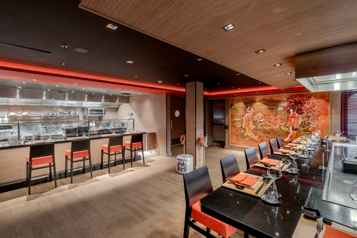 Sushi and hibachi-style dining with interactive chef performances.