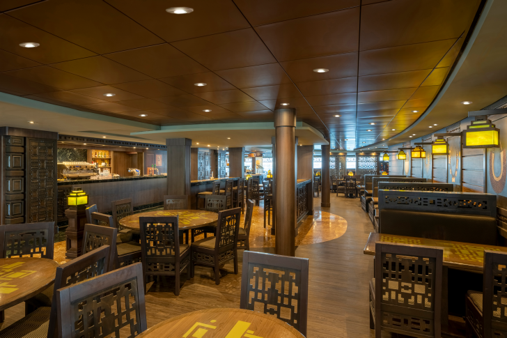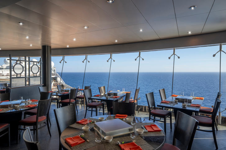 A specialty Asian fusion restaurant offering sushi, sashimi, dim sum, hot pot, and noodle dishes. Dining at Sea Pavilion requires an additional fee and is available for select meals.
