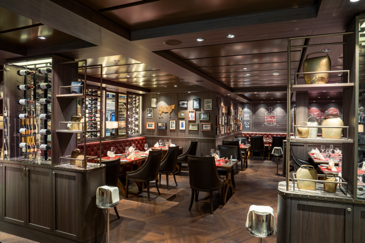 This sun deck venue serves breakfast, lunch, and casual dining with gourmet sandwiches and burgers. Yacht Club Bar & Grill overlooks the ship’s bow and provides a relaxing environment for upscale casual dining.