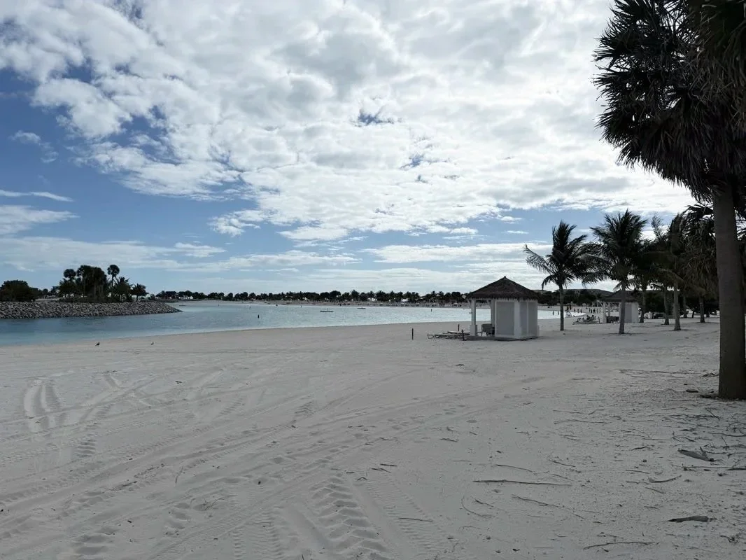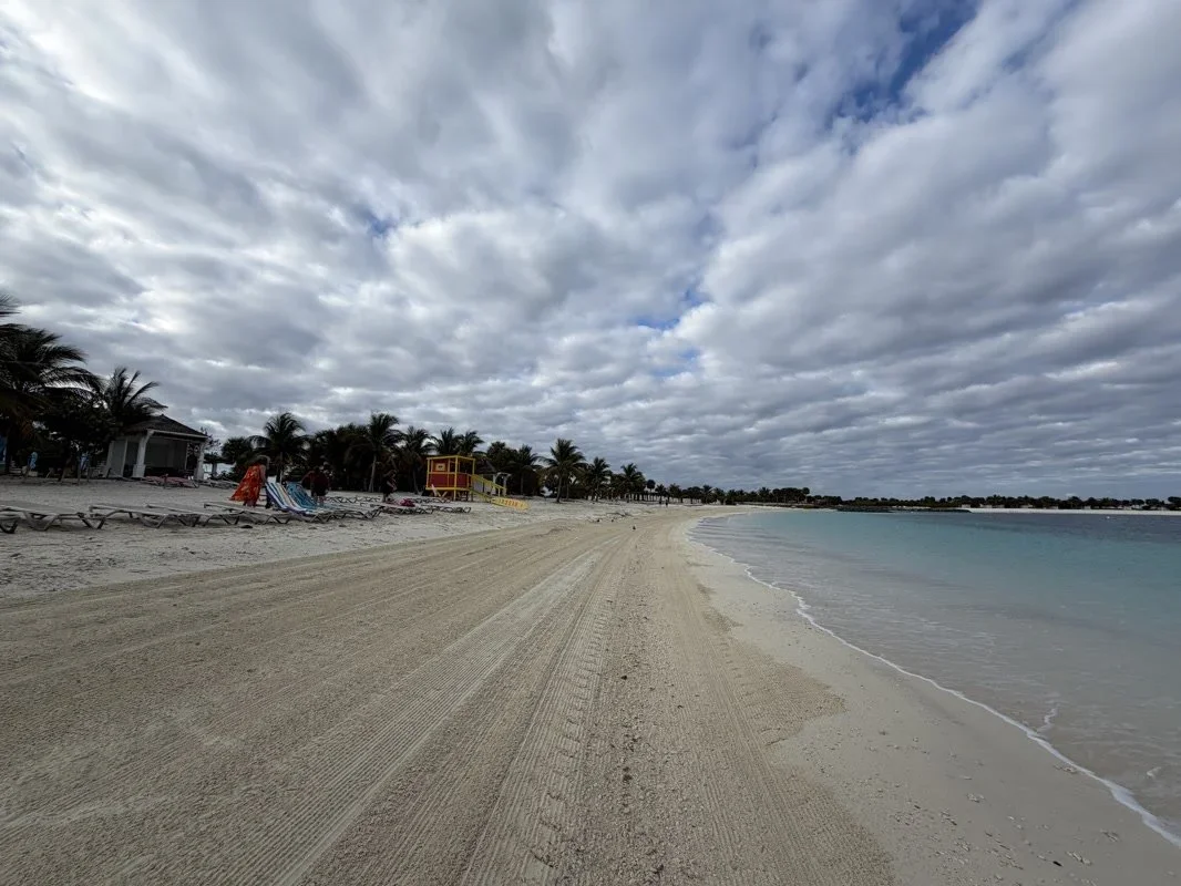 South Bay Beach is located near the center of the island, close to Seakers Grill and the Flamingo Bar. This makes it convenient for guests seeking easy access to food, drinks, and other island amenities while still enjoying the beach. Activity levels are higher here due to its central location.