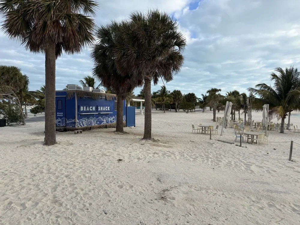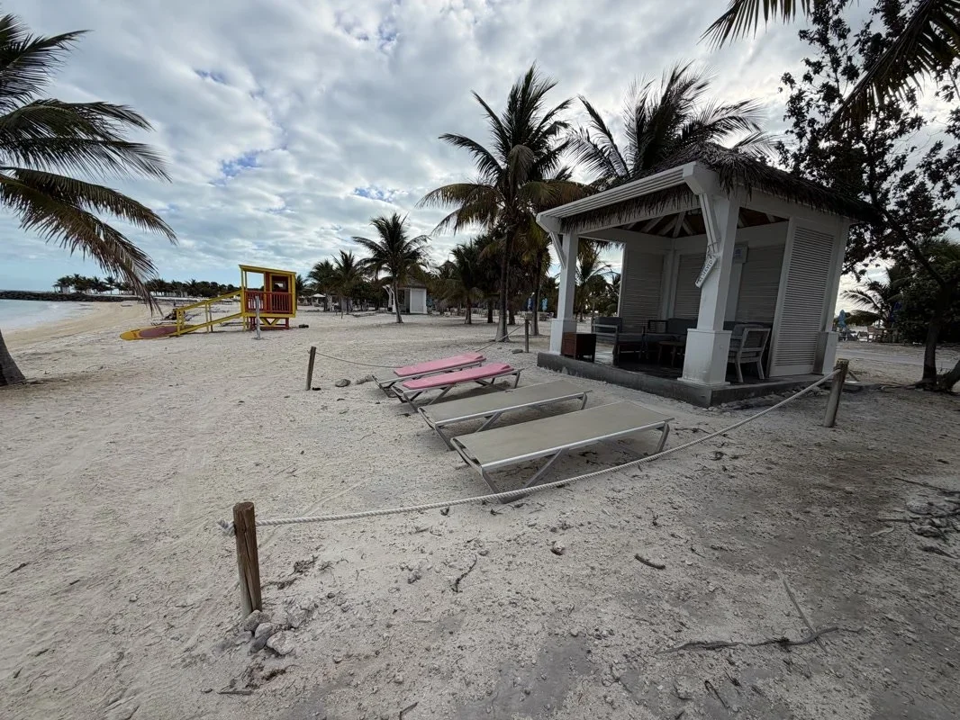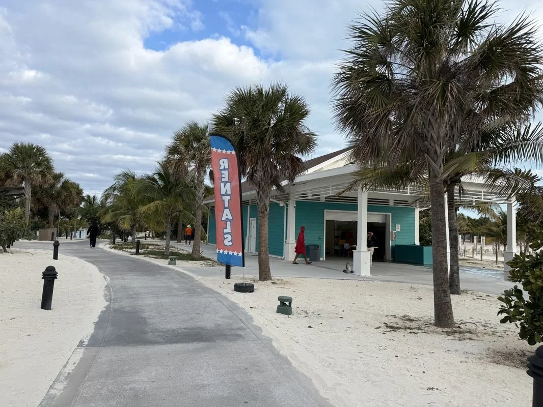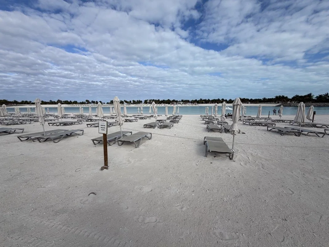 One notable change in recent years is the reduction of complimentary beach seating. Most lounges with umbrellas require a rental fee of approximately $80 for two loungers, which differs from other private cruise islands where free loungers are more widely available. As a result, many guests bring towels or blankets to place directly on the sand.