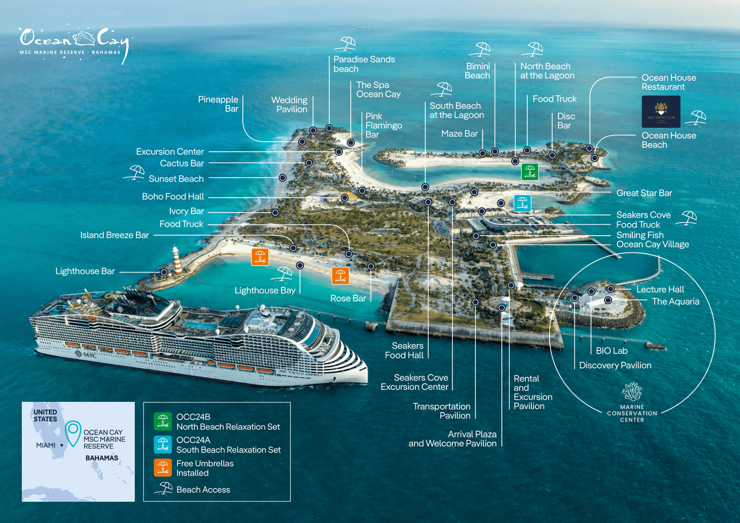 Ocean Cay: MSC Cruises Private Island Guide – Map, Menus, Beaches, & Info