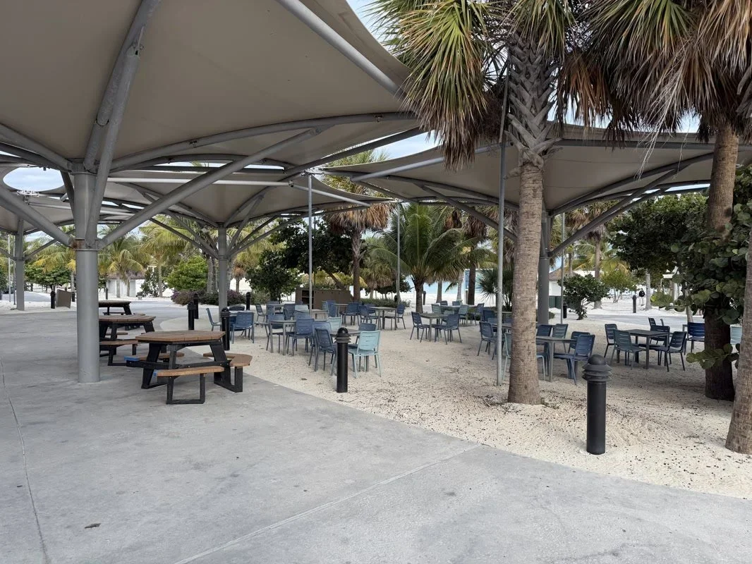 Ocean Cay is compact and easy to explore on foot. Paved paths and sandy walkways connect beaches, dining areas, bars, and activity zones. Guests preferring not to walk long distances can use the complimentary tram service, which stops at major beaches and points of interest. Trams have shaded seating, and beach wheelchairs and wagons are also available for mobility support.